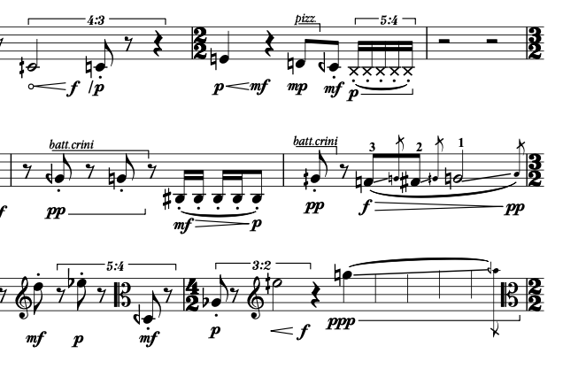 Excerpt from a slowly unfolding canon with 50 voices for electric guitar and live electronics (Supercollider).